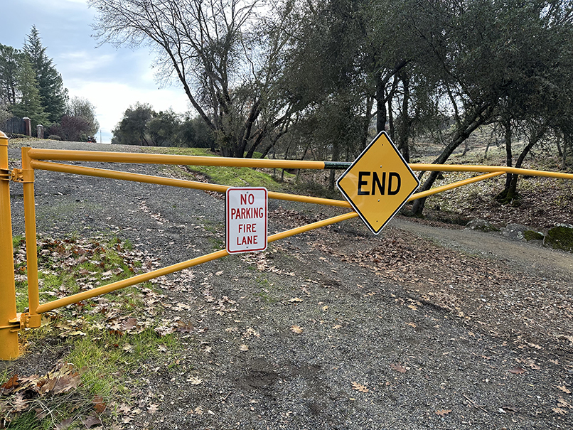 Through a volunteer effort, the gate has been painted and cleared. The fire department should be happy with us now! Take a walk down the road and check it out!
