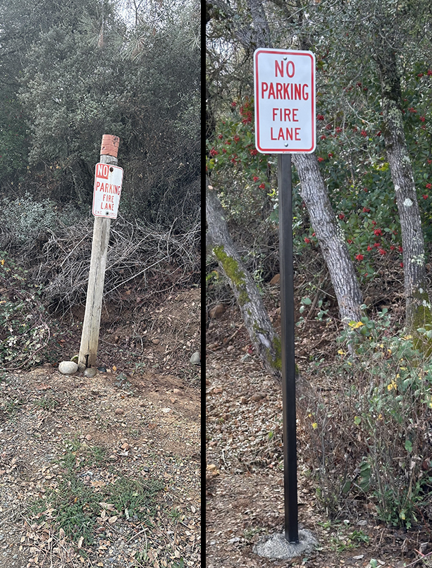 PG&E has said that we need to maintain 10 ft vegetation clearance around all utility poles. The California Public Resource Code 4292 requires the firebreak and tree limb removal. The road association will be working with individual landowners to work toward having a fire safe neighborhood.
